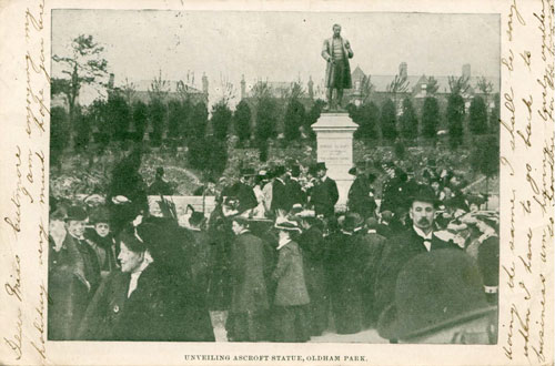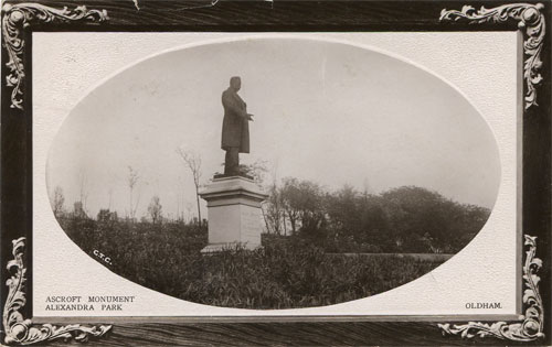 In 1903 a bronze and granite statue to the memory of Robert Ascroft, designed by E. P. Pomeray,