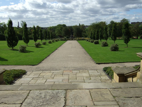 View from the Lions Den, looking down the Broad Walk pathway to the Park Fountain and beyond and the end will be the Statue of Rebecca .