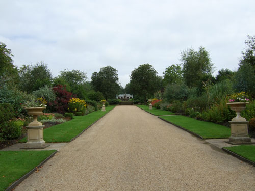 View from in front of Rebecca Statue looking up Broad Walk to the Park Fountain with the Lions Den beyond at the end..