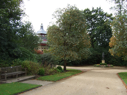 View taken near the end of the Broad Walk, showing Rebecca Statue and the close proximity of the Observatory.