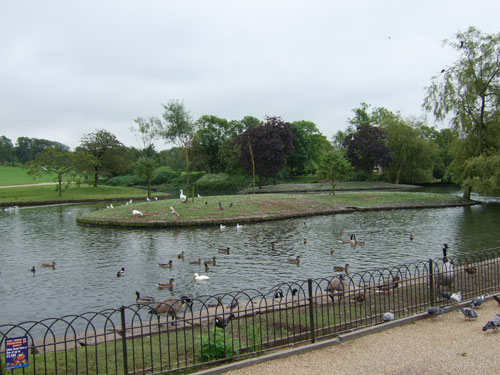 Another view of the Duck Pond, taken from the Promenade showing an overview and both islands.
