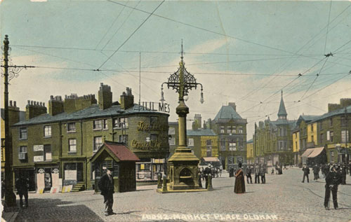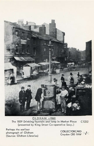 the Oldham Market Place in 1859 as shown in the postcard above.