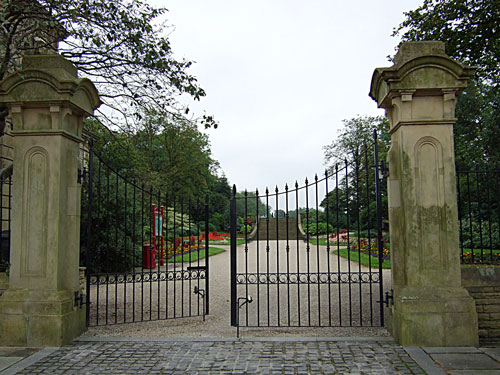 The constituents of the Main Park Entrance are the Italian style Lodge built of Yorkshire stone with its small tower, stone pillars, cast iron gates, inclusive of the pathway for around 70 yards, with benches on either side then, the Statue of Emma, "The Flower Girl", on the right just before a flight of Victorian steps. (check the link to Emma Statue). Also included is the Drinking Fountain in front of the gates.