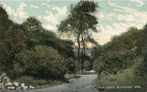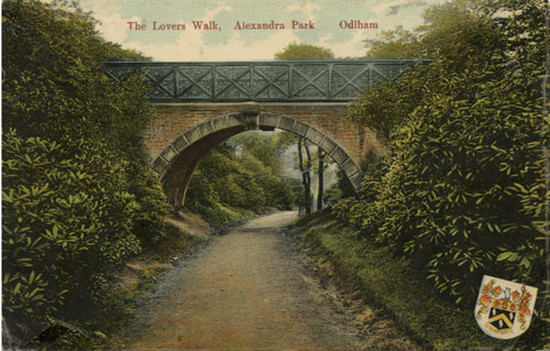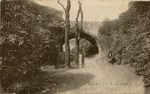 The tree lined bridge underpass known as Lovers Lane or Lovers Walk has lost some of its trees, seen in the postcards below, plus around a metre in height between the path and underside of the load stone, possibly filled in for safety reasons. However it still presents a commanding presence.