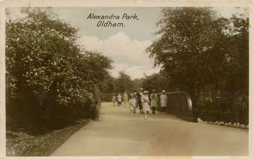 I am sending you a view taken in Oldham Park. I will send you other views later & then it will give you some idea what Oldham is like.