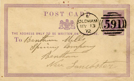 Posted 13 May 1872 to Bentham Mills Spinning Company in Bentham nr Lancaster.